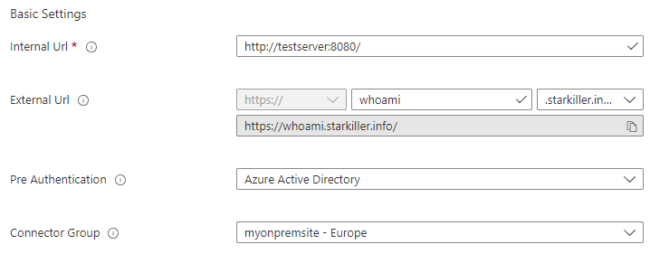 Let’s look first at the AAD App Proxy config, where I am using a custom domain that I previously associated to my tenant: