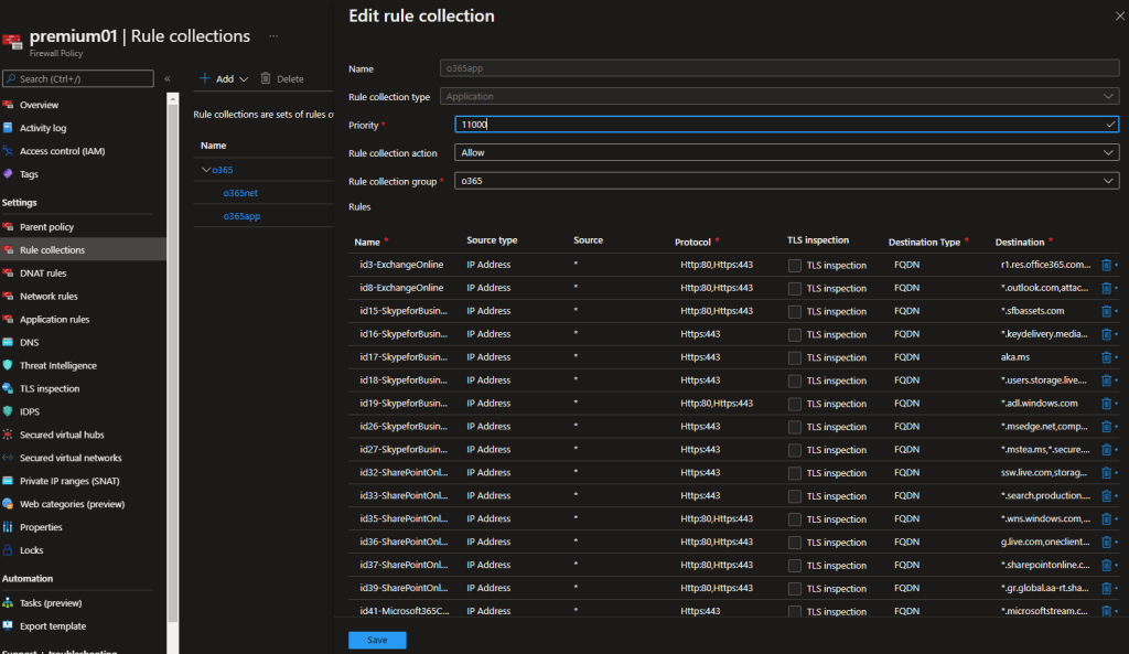 You might have seen that my Azure Firewall Policy is not called “o365policy”, but “premium01”. Great observation! And a great segway to the next section.
