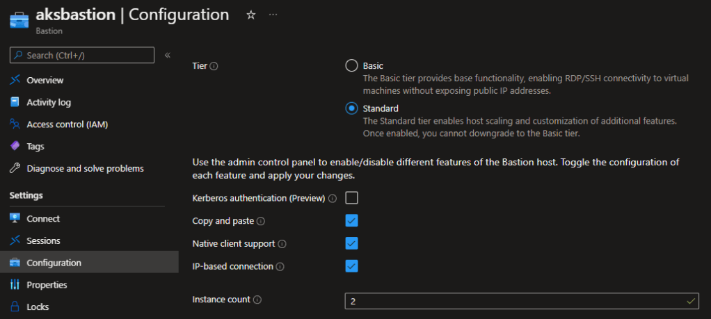 And to finish, as reference here the configuration I have in my Azure Bastion, in case you want to repro this.