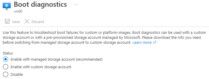 First of all, you need to enable the serial console on your VM. The only thing you need to do is configure Boot Diagnostics, and the easiest for that is using a managed storage account: