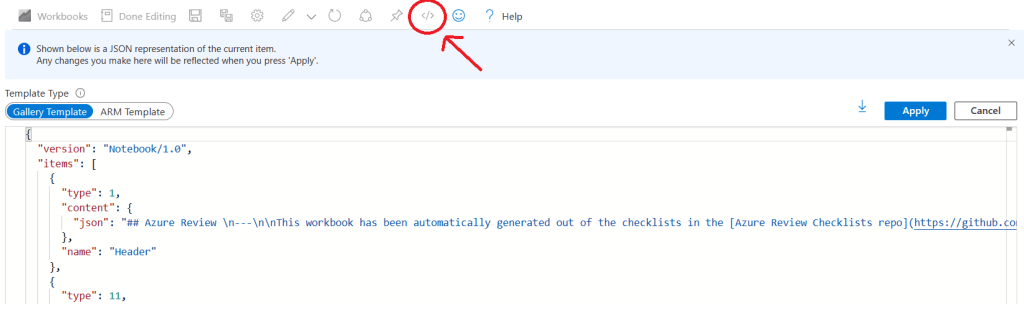 Very easy. You just go to the Workbooks folder of the repository, you open up one of the JSON workbooks stored there, and copy the JSON text. You then go to your Azure Monitor, create a new workbook, edit it in “advanced mode”, and paste the previously copied JSON text: