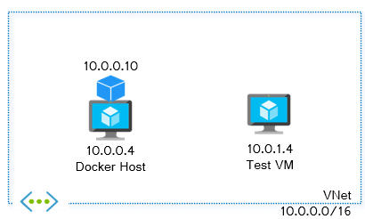What can we do now? Well, there is a way of teaching Azure where to reach certain IP addresses: with static routes (also known as User Defined Routes). We will create static routes in the Test VM and point it to to the docker host IP address: