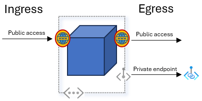 • Public access: for egress communication (data or control plane), the service will typically source these flows from its public IP address.