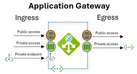 For ingress, you can access an Application Gateway over its public or its private address. Besides, you can connect to it using private endpoints.